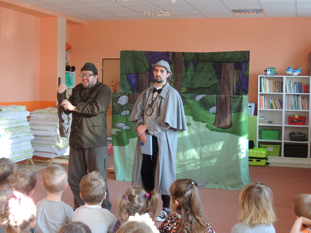 Dňa 06.02.2018 nás navštívilo divadielko s príbehom „Detektív Očko“. Deti sa v rozprávočke zoznámili s veveričkou Kamilou, zajacom Ferkom, medveďom Bonifácom, jeleňom Bohumilom, líškou Filoménou, sysľom Ferom a horárom a detektívom Očkom. Príbeh sa odohrával v lese, kde si zvieratká nažívali svorne a šťastne, až kým jedného dňa nezačali naraz miznúť veci. Zvieratká napísali list detektívovi Očkovi, aby im prišiel pomôcť nájsť zlodeja. Spoločne s deťmi detektív Očko tento prípad vyriešil.