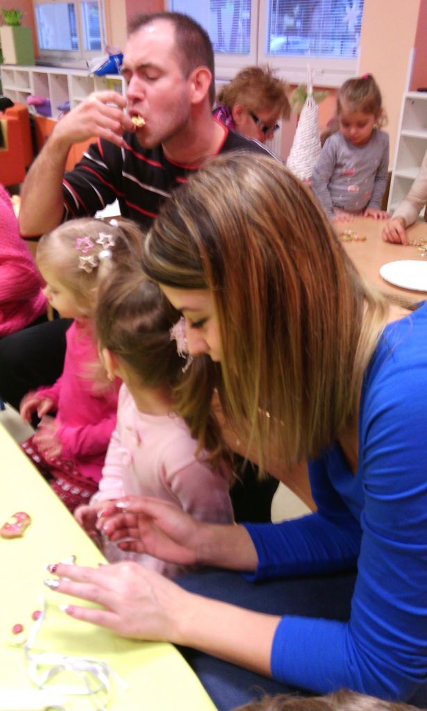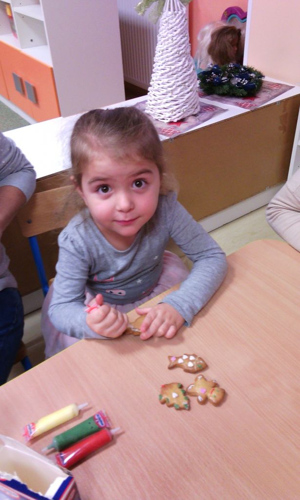 V tomto predvianočnom čase sa našou MŠ niesla vôňa sladučkých medovníkov, ktoré pripravili, upiekli deti spolu so zamestnancami MŠ. Na zdobenie sa tešili všetci. Každou triedou sa niesli nežné tóny vianočných kolied a partia rodičov s deťmi i pani učiteľky nanášali na voňavé medovníčky šikovnými rukami prekrásne ornamenty. Hotové medovníky čakali na maškrtné jazýčky detí, ktoré si veľmi pochvaľovali túto vianočnú pochúťku. Na Vianoce sa už všetci veľmi tešíme.