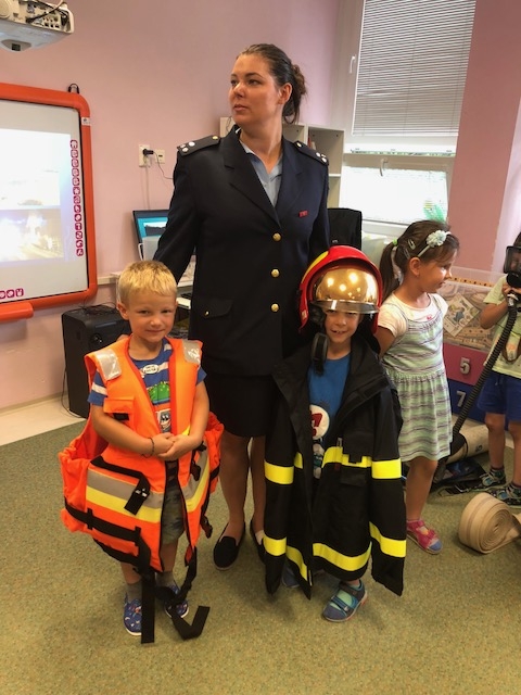 Dnes 18.06.2018 do našej materskej školy prišli medzi deti pracovníci hasičského zboru z Mojša. Deti prežili zaujímavé predpoludnie, oboznámili sa s prácou hasičov, prakticky získavali informácie o ich záchranárskej práci. Pre deti pripravili v rámci protipožiarnej prevencie tému OHEŇ - dobrý sluha, zlý pán. Hasiči deťom vysvetlili všetko potrebné ohľadom požiarnej prevencie, čo robiť keď spozorujú oheň, ako a kedy volať hasičov, ako spoznajú hasiča, priblížili im prácu hasičov, deti sa naučili rozpoznávať núdzové čísla (150, 155, 158, 112), prečo sa nesmú hrať so zápalkami a mnoho ďalších informácii. Oheň, z diaľky hreje, zblízka spaľuje.