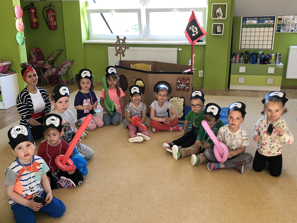 V našej materskej škole sme dňa 04.06.2021 založili veľkú pirátsku družinu. Rodičia premenili deti na pirátov a v triedach ich čakali pirátske pani učiteľky.