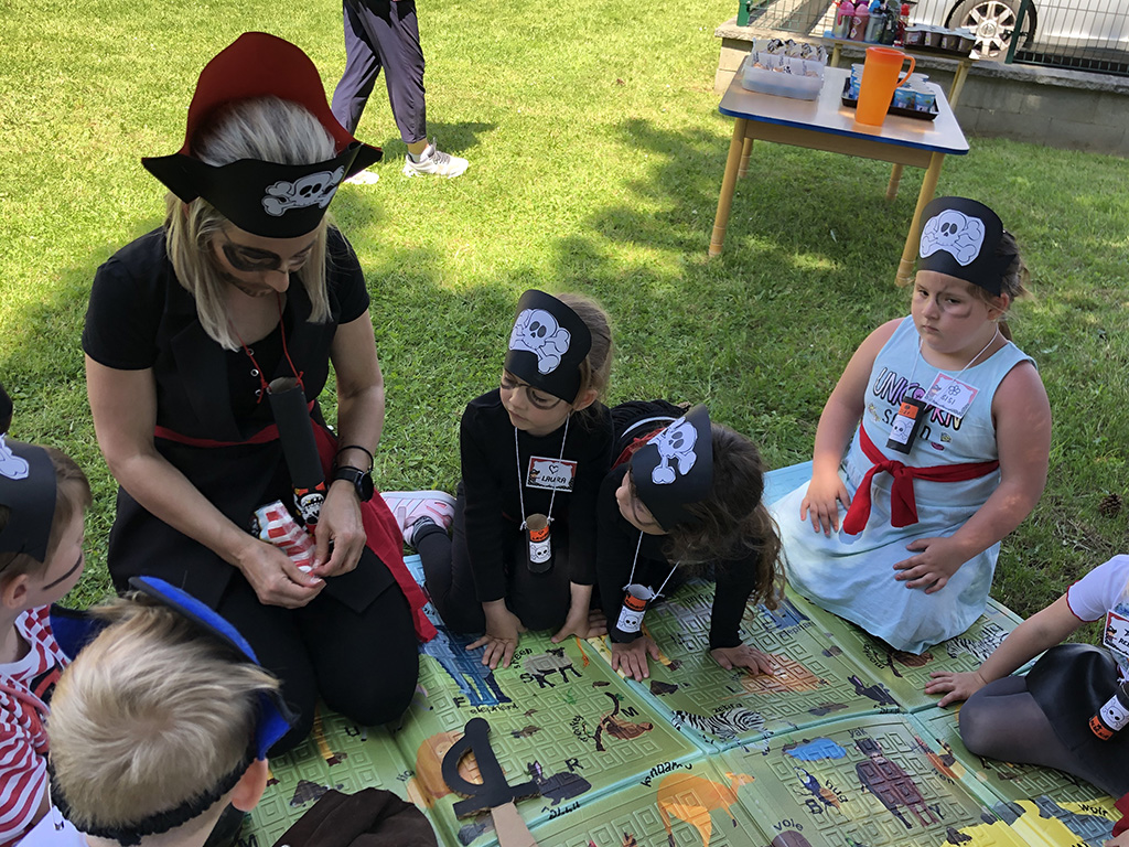 Zložíli sme pirátsky sľub a postupovali podľa mapy , ktorá nás doviedla k pokladu. Od veľkej radosti si zatancovali na pirátskej veselici.