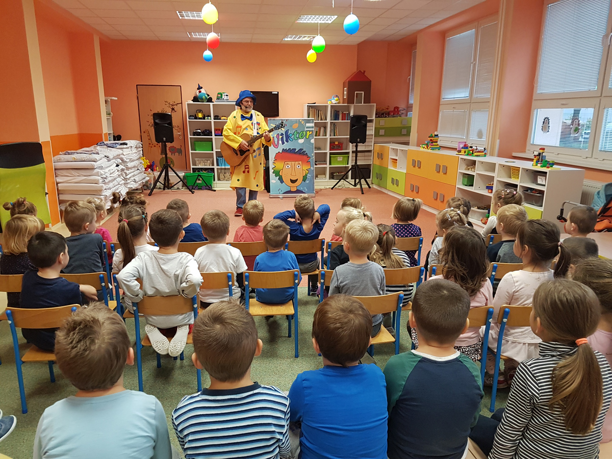 Dňa 02.11. 2017 do našej škôlky zavítal pán Viktor s hudobno – zábavným programom „Pesnička je liek“.