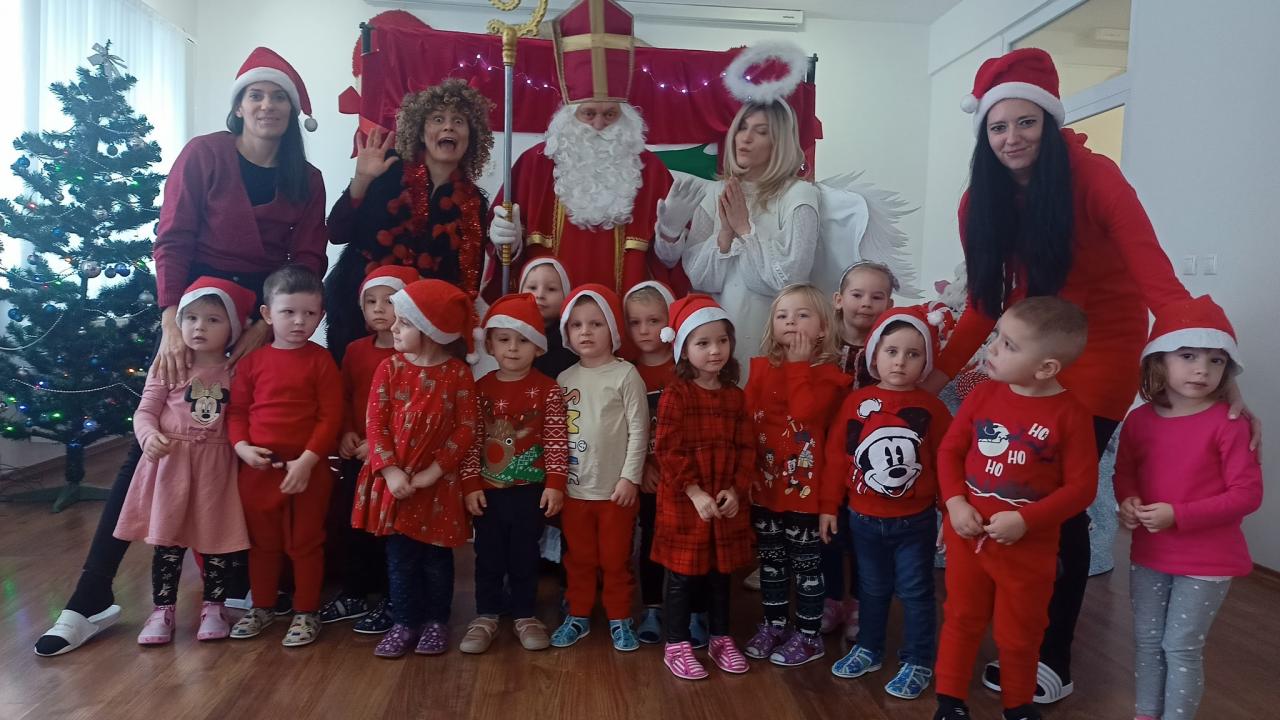 ...aj touto básňou sme dňa 07.12. potešili Mikuláša v doprovode anjelika a čertice. V úvode musel anjelik vyriešiť záhadu zmiznutia hory plnej sladkostí, čo mala na svedomí samozrejme čertica-Bertica. Duch Vianoc spoločne s našimi deťmi pričarovali stratenú horu späť a tak mohol Mikuláš odmeniť každého z nás. Ako ospravedlnenie nám Bertica zaspievala pieseň z vianočného repertoáru a tak v nás navodila tú správnu atmosféru blížiacich sa Vianoc.