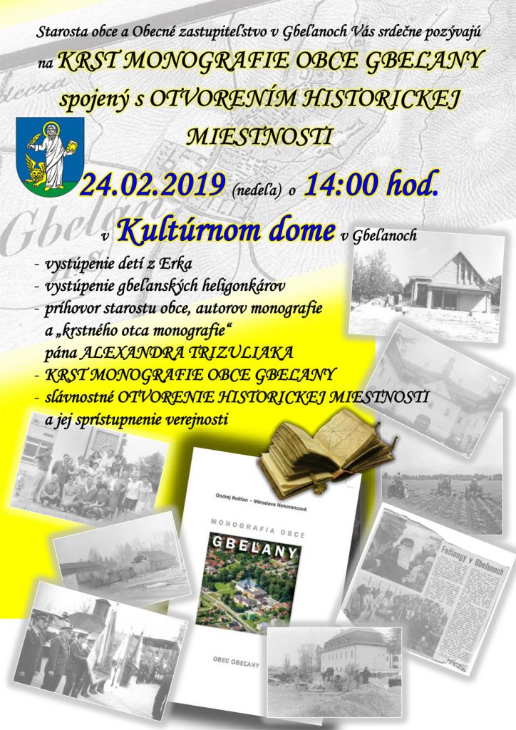 Krst knihy Monografia obce Gbeľany a otvorenie historickej miestnosti