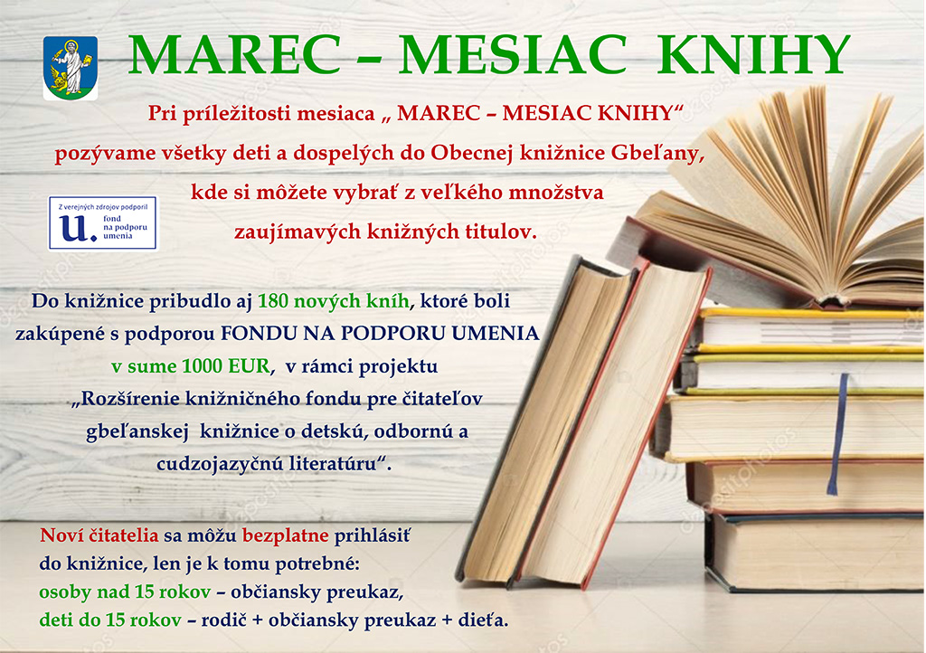 Pri príležitosti mesiaca "Marec - Mesiac knihy" pozývame všetky deti a dospelých do Obecnej knižnice Gbeľany.
