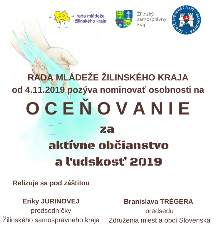 Výzva na predloženie návrhov na ocenenie za aktívne občianstvo a ľudskosť 2019 v Žilinskom kraji.