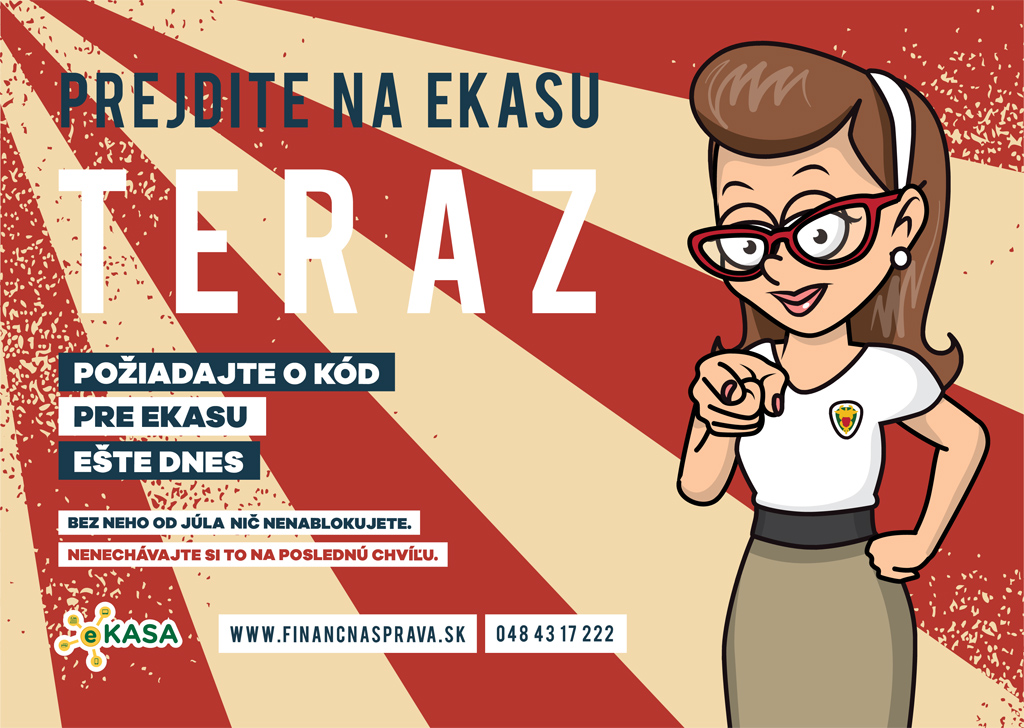 „Finančná správa spustila projekt eKasa. Ide o online napojenie pokladníc na finančnú správu. Nové povinnosti sa týkajú všetkých podnikateľov, ktorí evidujú tržbu. Podnikatelia musia svoje pokladnice upraviť alebo vymeniť a zapojiť sa do systému eKasa najneskôr od 1.júla 2019. Finančná správa v tejto súvislosti dáva do pozornosti nasledovný oznam: