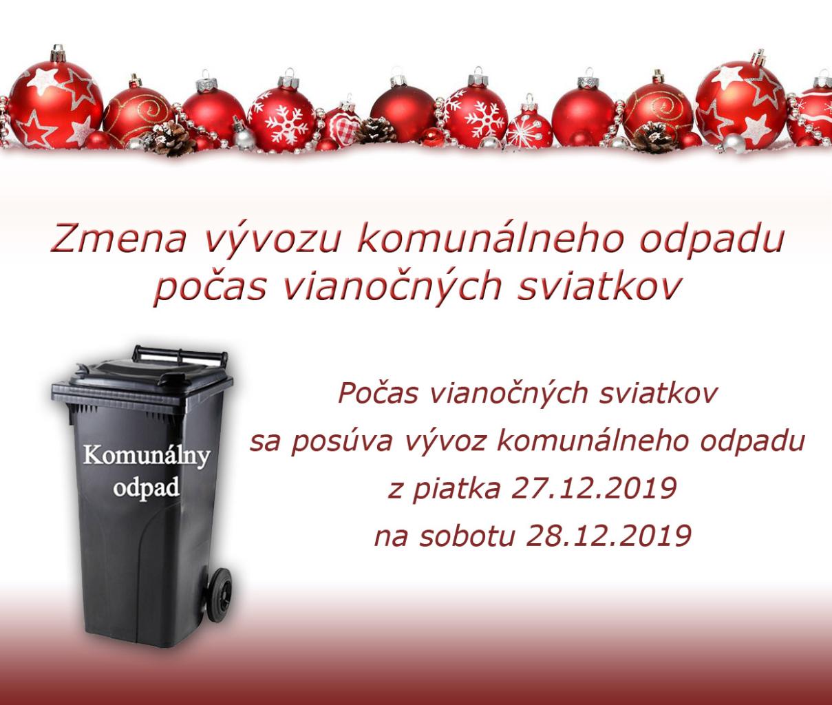 Zmena vývozu komunálneho odpadu počas vianočných sviatkov