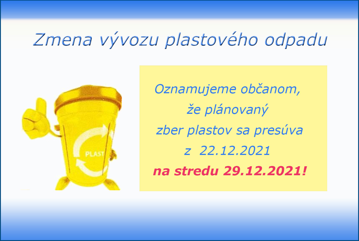 Zber plastov sa presúva z 22.12.2021 na stredu 29.12.2021.