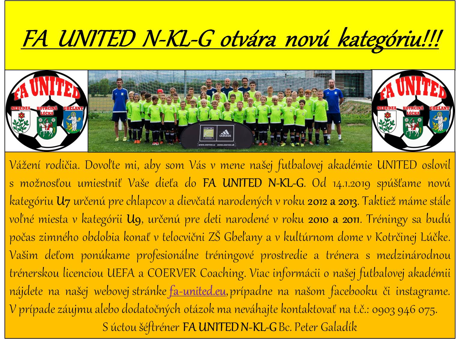 Vážení rodičia, spúšťame náborovú akciu, aby sme mohli v našej futbalovej akadémii kategóriu U8 rozdeliť na 2 samostatné kategórie U7 a U9.