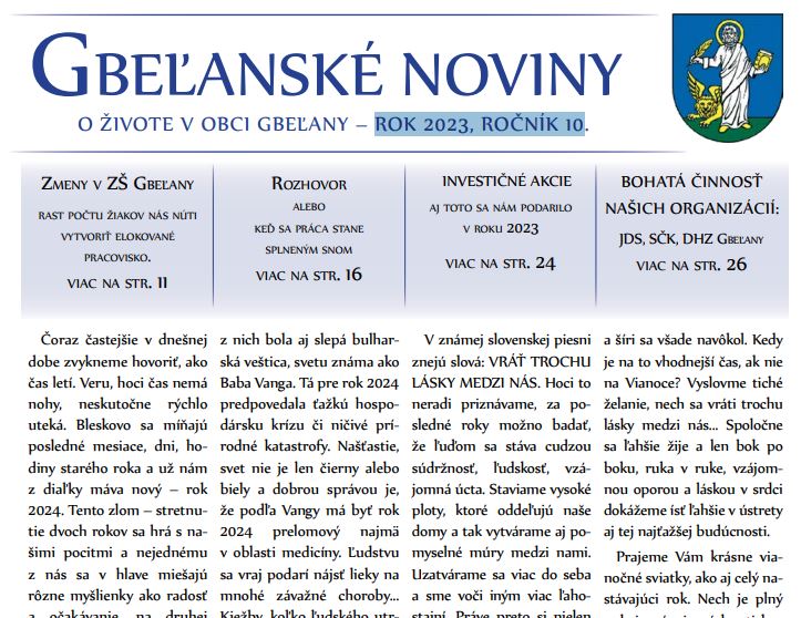 Gbeľanské noviny - ROK 2023, ROČNÍK 10 Typ: PDF dokument, Velkosť: 6.48 MB
